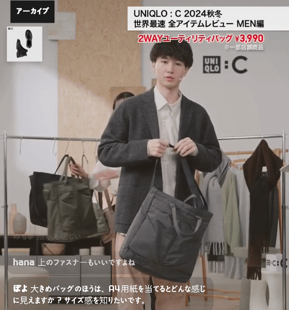 이렇게 의류뿐만 아니라 다양한 액세서리에서도 집중하고 있으며, 그 중에서도 가방은 많은 관심을 받고 있는 카테고리입니다. 특히 이 가방은 유니클로C 포터가방으로 가장 인기가 많은 아이템으로, 실용적이면서도 세련된 디자인이 큰 특징입니다.